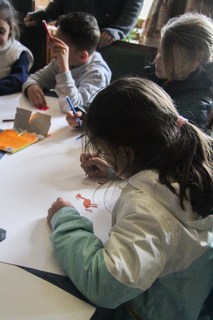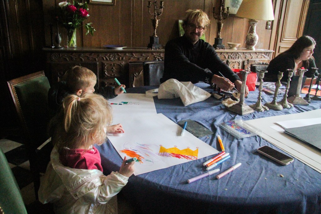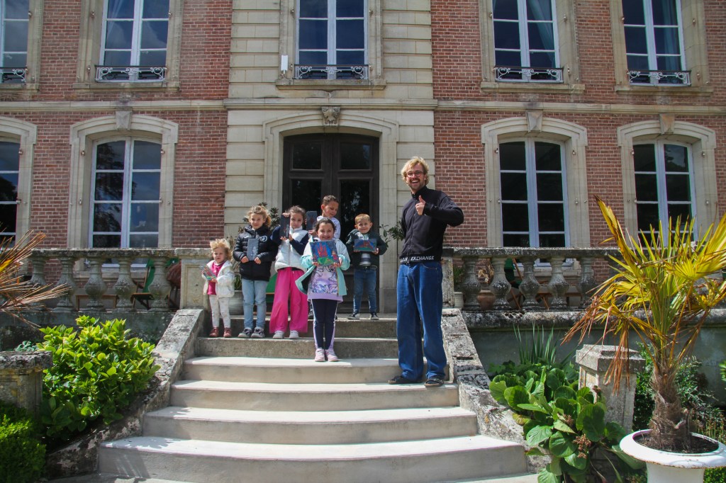 Camille invited the Schoolgroup „Centre Pastel“ to the Residenz at the Château de Bouillancourt-en-Séry in the North of France to show them the Castle and Christophers Projekt. The Artist gave the class a tour of the castle and its history aswell as his paintings of interiors and afterwards we asked the Children questions about their Ideas about the Castle and what they connect with it.